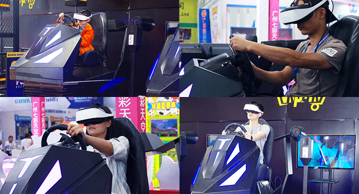 The VR Racing CarTM 9D simulator is paired with the Deepoon E3 headset.It Is a high-resolution, smoother image and lower dizzy virtual reality headset.
